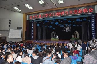 2011级研究生迎新晚会于宪梓堂隆重举行。来自五湖四海的莘莘学子齐聚一堂,共同欣赏这场视听盛宴。在此次迎新晚会上,我们人文学院的学生积极参与了多个节目的演出,节目形式多样,异彩纷呈。来自体育教育训练学专业的张婧同学参与了开场舞的演出,热情四射的舞蹈一下子活跃了整个演出现场的气氛。来自国外马克思主义研究专业的胡小迪同学、中国近现代史基本问题研究专业的范晓莹同学以及新闻与传播专业的陈睿同学与其他学院学生联袂表演诗朗诵《从今天起,继往开来,饮水思源》,感情真挚,表达了交大学子情系母校、发愤图强的坚定信念。