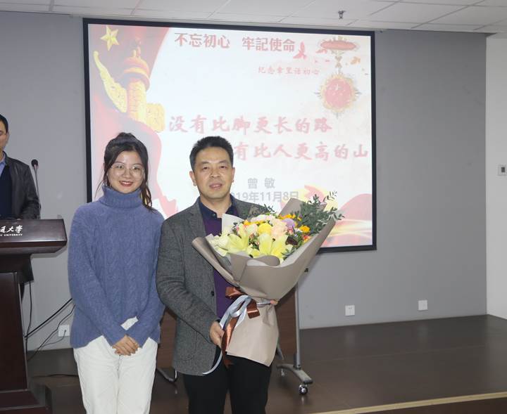 本次“纪念章里话初心”先进事迹宣讲邀请到了“庆祝中华人民共和国成立70周年纪念章”获得者、能动学院的曾敏教授。曾教授分享了其获得庆祝中华人民共和国成立70周年纪念章的故事,并将他的个人经历、研究方向、科研经验等方面对大家进行了分享。