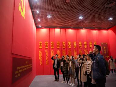 在学习的过程中,同学们感慨颇深,在参观到党旗、入党誓词处,在党支部书记的领导下,党员们重温入党誓词,其他同学也积极相应举手宣誓。学习结束后同学们都感到心情澎湃。唐再煜同学说道“通过图文看到陕西的发展变化,这就是中华人民共和国成立70年间所取得的辉煌成就的缩影;在教育板块看到交大为陕西做出的贡献。很荣幸自己是一名交大人,希望我能在‘西迁精神’的引领下不忘初心,继续前进,为大西北的发展奉献交大智慧、贡献交大力量”。