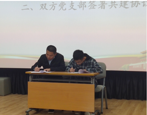 人文学院硕0115和0116党支部书记倪蒙与南洋书院学生第二党支部书记毛文渊签署支部共建协议,以后将采取联合集中学习、联合开展党课及实践教育活动等形式,交流党建工作经验,共享党建工作信息,共同加强支部的政治建设、纪律建设、组织建设。
