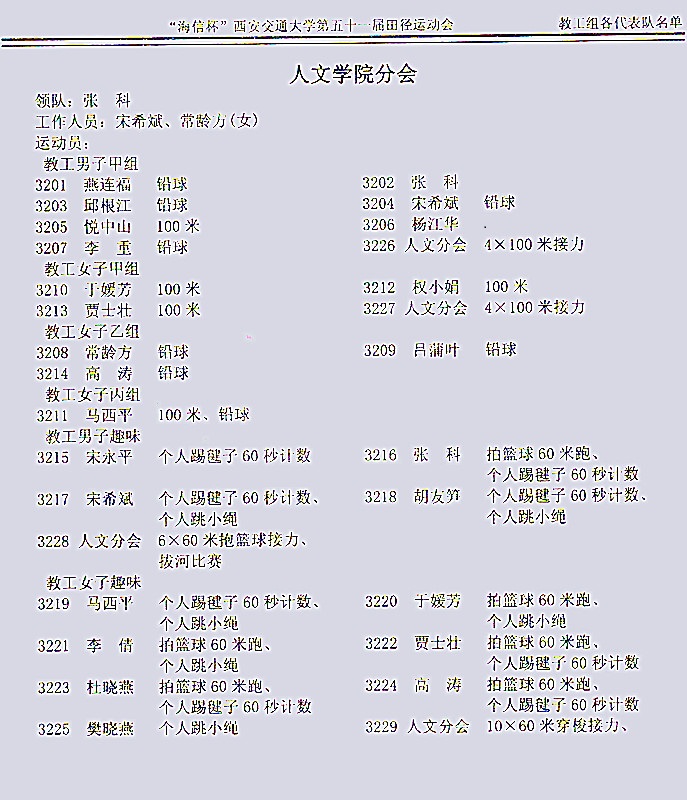 3. 教工男子趣味个人踢毽子 15:00 四大发明广场