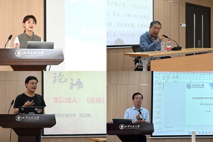 )负责人,国家重大课题“中华优秀传统文化与科学社会主义价值观主张高度契合性”首席专家陆卫明教授的带领下,同学们从《论语》经典出发,解读君子、中行、独立之理想人格,智、仁、勇三达德,内圣外王、达兼穷独的理想等人生智慧,探究学为君子、学以成人的儒家宗旨。张顺教授的《历史视域下的中国文化与中华民族共同体》从历史维度与全球视野出发,引导同学们深入了解中华文化的发展演进的四个历史阶段,揭示了中华文化对中华民族共同体型塑过程及其内在共生性。在曹耿献副教授团队的音乐课堂上,同学们从中国特色交响音乐中感悟创新思维,解读陕西的延安精神、梦桃精神、西迁精神,在现场欣赏陕西省戏曲研究院秦腔名家段红老师饱含激情、声情并茂的精彩秦腔唱段,跟随李东鹤副教授思辨人工智能与秦腔艺术的结合。