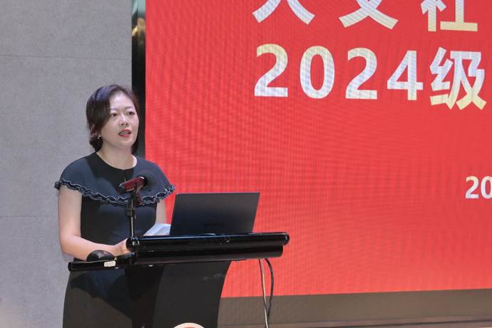 纪梦然对全体新生加入人文学院大家庭表示热烈欢迎,并表示,这是一场美丽的双向奔赴,2024年恰逢人文学院建院30周年,各位新同学将用自己的努力和创造,参与续写学院未来的辉煌。希望同学们过好在大学的每一天,你的大学怎么过,就决定了你以什么样的姿态迈向社会;希望同学们利用好在大学的每一个平台机遇,积极参与更多有意义的活动,为塑造一个更加丰富立体的自我而努力;希望同学们珍惜在大学相遇相知的每一个人,老师、同学、校友都是一生的宝贵财富,学会在沟通与合作中完善和提升自我。学院、书院是同学们的温暖港湾和坚强后盾,祝愿同学们脚步坚定、前景广阔,在大学度过充实而美好的时光。