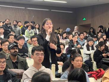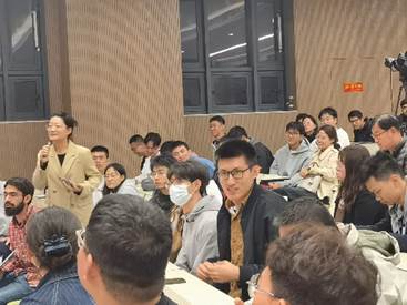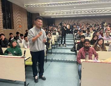 师生近距离感受中国传统戏剧艺术魅力的宝贵机会。李小锋老师的精彩演讲和表演让师生们感受到了秦腔艺术的写意美学和民族精神,李老师说戏曲悟道、艺术养心、文化化人、要有文化自信和民族自信,引发了在场同学们的热烈反响,掌声不断。许多学生表示李老师的讲座为他们打开了秦腔艺术的大门,原来我们的传统戏剧是这么地充满生机和活力,以后会多多接触了解秦腔等各种传统剧种。还有众多留学生慕名而来,教室后面站满了学生,留学生的参与热情尤其高涨,有留学生表示“虽然听不懂唱词内容,但能感受到旋律之美,很享受观看秦腔戏曲片段”。讲座结束,研究生们围着李老师答疑并签字,同时建议学校多举办秦腔等戏曲进校园活动,实实在在地让学生们身临其境感受戏曲的无限魅力。