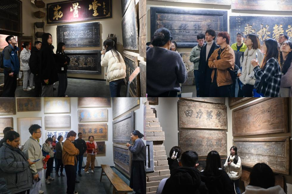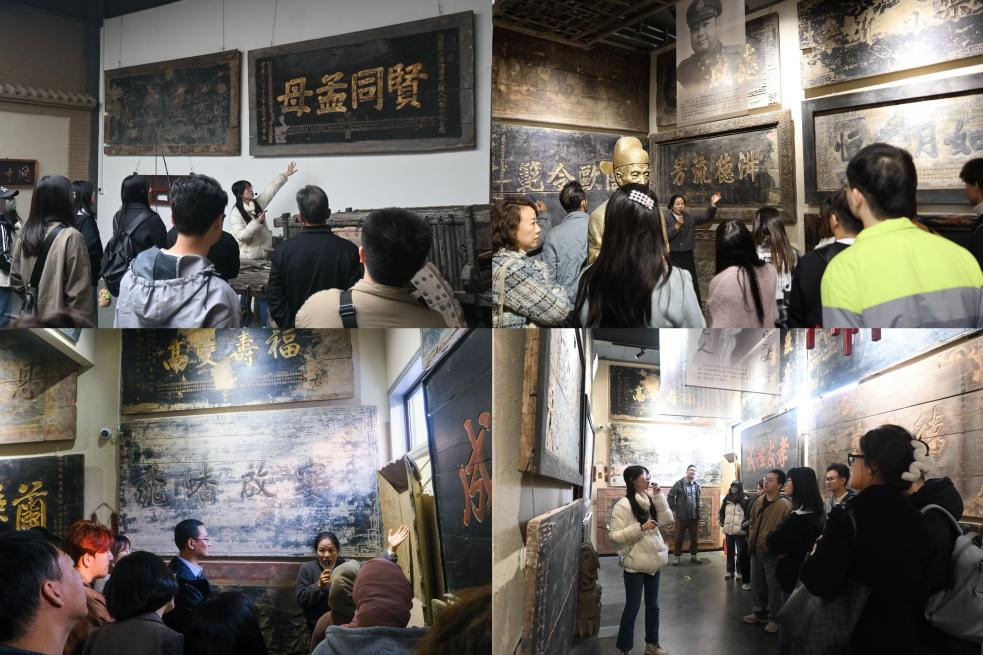 华夏匾额博物馆收藏、展出明清至近代藏品300余件,展厅主要由匾额制作场景复原、额篇、匾篇组成,根据不同匾额意蕴分为堂号、科考、节孝、贞节、名望、祝寿等多个篇章。讲解员耐心地向大家详细阐释各种匾额的不同用途及其独特的悬挂位置差异,让大家了解到匾额是集文学艺术、书法篆刻、建筑装饰于一体的艺术形式,从大小不同的匾额可以欣赏到凝练的文辞之“美”和精湛的书法之“美”,更是深刻体会到其背后所蕴含的中华优秀传统文化意蕴和中国古人的价值观念、精神追求。