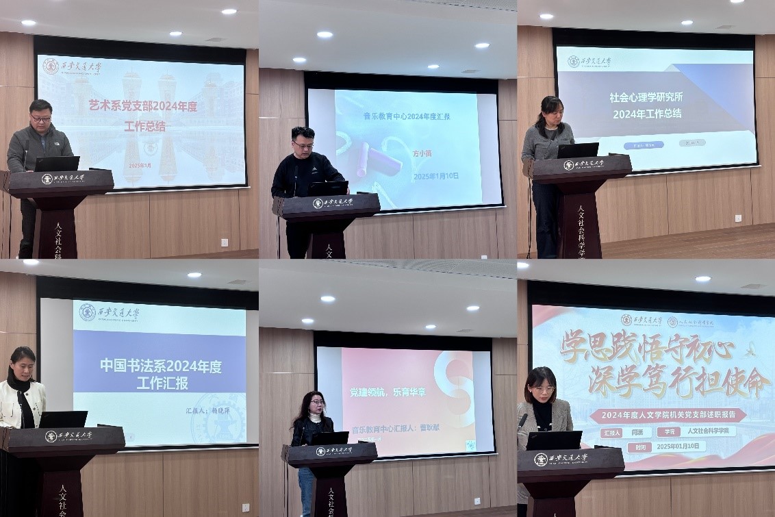 人文学院7个系所负责人围绕人才培养、科学研究、队伍建设对2024年度工作进行述职。7个教工党支部书记围绕师生思想政治引领、党支部规范化建设、党建和中心工作深度融合等进行述职。哲学系为师生搭建“松梧论坛”“彭康哲学讲坛”等学术交流平台,邀请20余位国内外知名学者来访交流,提升学术影响力。社会学系开展有组织的科研,2024年度科研到款突破800万。中文系以筹建丝绸之路历史文化研究院为契机,加强对外交流,在高层次人才引进方面取得突破。艺术系多措并举提升人才培养质量,指导学生在多个赛事中获得奖项。中国书法系以建院30周年为契机,联合汉中市文联、曲江艺术博物馆、大唐西市博物馆等单位,举办多场展览和研讨会,推动学科发展,扩大社会影响。音乐教育中心聚焦精品课建设,开设20余门课程,其中《音乐鉴赏》在智慧树平台学习人数在全国普通高校“音乐类”课程中排名第一。社会心理学研究所积极参与陕西省社会工作研究院筹建和医学心理学会换届等,发挥专业特长服务学校和社会。