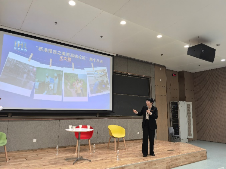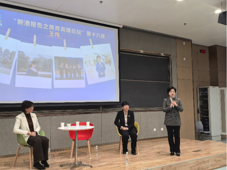 研究生院和校工会联合主办、人文学院承办的“新港报告之美育高端论坛”第十八讲在创新港校区成功举办。论坛以“她言时代·美绽芳华”为主题,特邀本校巾帼标兵代表:生命科学与技术学院卢晓云教授、人文学院王伟教授、机械工程学院王文君共三位,以圆桌对话形式,分享他们在职业生涯、成长经历中对于美的不同感知和体会。本次论坛吸引了众多师生,报告厅内座无虚席,后排站满了前来聆听的学生,同时现场还有很多来自不同国家的留学生。校友关系发展部副主任、校友会秘书长兼教育基金会副秘书长赵力担任论坛主持,为本次活动注入独特视角。