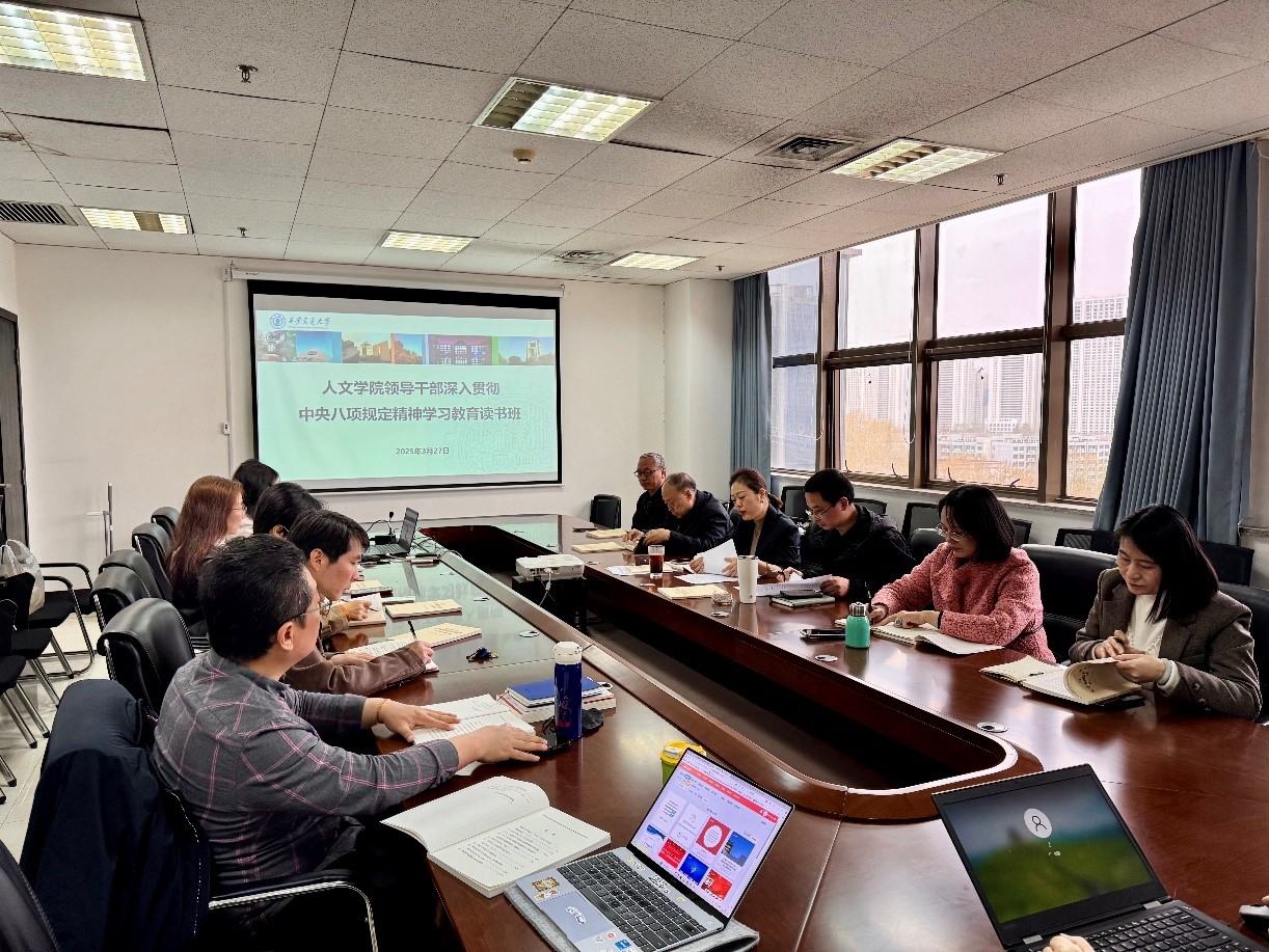 3月27日下午,人文学院举行党委理论学习中心组集体学习暨干部读书班,传达学习习近平总书记关于深入贯彻中央八项规定精神学习教育的重要讲话和重要指示精神,传达学习上级党组织关于深入贯彻中央八项规定精神学习教育的通知要求和会议精神,安排学院深入贯彻中央八项规定学习教育相关工作。会议由学院党委书记纪梦然主持。