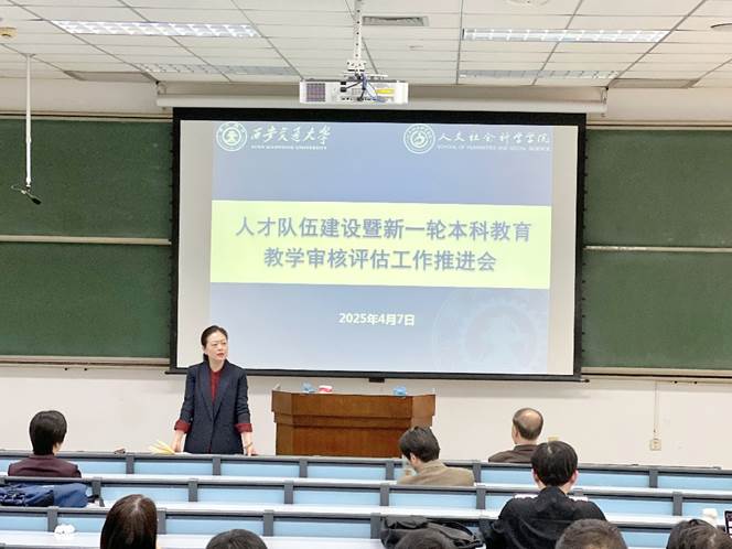 为全面贯彻党中央关于做好新时代人才工作的重要精神,迎接教育部新一轮本科教育教学审核评估,按照人文学院2025年重点工作部署,4月7日,人文学院在主楼C205教室召开人才队伍建设暨新一轮本科教育教学审核评估工作推进会。会议由人文学院党委书记纪梦然主持,院、系领导及全体骨干青年教师参会。