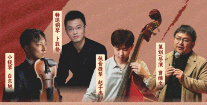 乐团现场演奏了拉赫玛尼诺夫/S.Rachmaninoff《练声曲》、门德尔松/Mendelssohn《春之歌》、《梁祝》(选段)、A.皮亚佐拉/A.Piazzolla《奇卓》和布宜诺斯艾利斯的四季《冬》、肖斯塔科维奇/D.Shostakovich小提琴低音提琴钢琴三重奏、和汉斯·季默/Hans Zimmer《加勒比海盗》等古典乐曲代表作,其中中国作曲家黄自先生创作的《玫瑰三愿》创作时,正值淞沪会战时期,作者看见满地玫瑰凋零,触景生情想起时局艰难创作此曲,其曲调哀而不伤,成为我国一首好听且经典的一首音乐。皮亚佐拉的两曲将热情赋予探戈,使之不局限于小曲,得到升华。演出曲目结束后,应现场观众热烈的掌声,在返场阶段,三位青年音乐家继续联合演奏了现代音乐方大同的《三人游》,同时即兴演奏了一曲爵士乐,深情且诙谐。