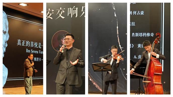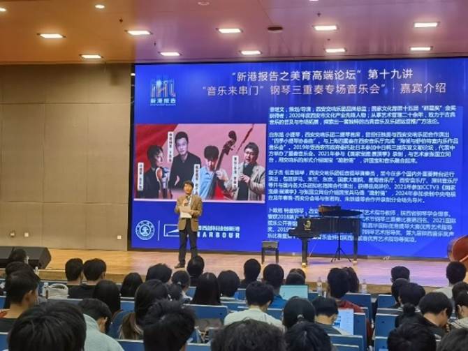 校工会、研究生院、人文学院三部门联合举办的新港报告美育高端论坛第十九讲在新港报告厅火热开讲。XSO西安交响乐团室内乐组为交大师生带来名为“音乐来串门”的专场音乐会,吸引了500余名校内外师生现场聆听,现场座无虚席。校工会主席弋景峰、副主席谢志锋参加了本次论坛,人文学院副院长张勇主持本次音乐会。