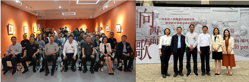 人文学院党委书记纪梦然、校友关系部主任许佳辉、党委宣传部副部长史瑞琼、党委统战部副部长程洪莉等主办单位领导和来自西安美术学院、西安各高校艺术学院及各界学者、艺术家齐聚一堂,共同见证这场艺术与精神交融的文化盛宴。开幕式由西安文理学院美术与设计学院副院长刘小飞主持,会场内气氛热烈,洋溢着对艺术与西迁精神的崇敬与期待。