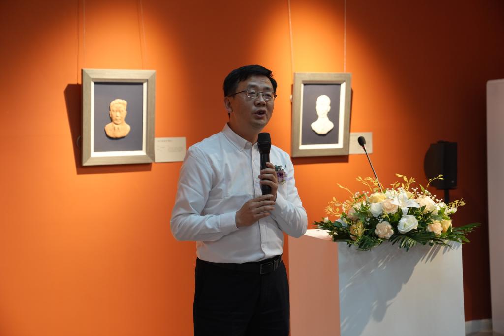 人文学院党委书记纪梦然、陕西省美术家协会副主席、陕西省雕塑院院长马辉、西安美术学院雕塑系主任陈晓春先后致辞。他们对展览的成功举办致以热烈祝贺,高度赞誉苗祥瑞老师以交大西迁教授、知名校友及时代先贤为题材创作的艺术作品。