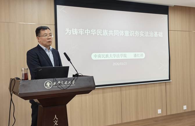 铸牢中华民族共同体意识研究中心联合主办的“130周年校庆人文学院系列高端报告”在兴庆校区主楼E座703会议室举行。中南民族大学法学院院长、二级教授、博士生导师潘红祥应邀作题为“《民族团结进步促进法》的立法理念和制度创新”的专题报告。党委统战部李巨星副部长、基地首席专家边燕杰教授、人文学院纪梦然书记、王伟副院长及各系所中心主任、支部书记等参加了讲座。报告会由人文学院院长李黎明教授主持。