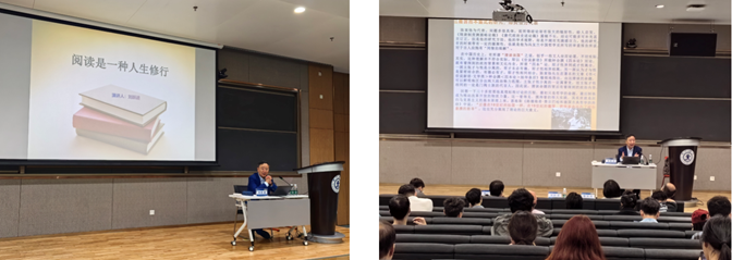 研究生院、人文学院主办的新港报告之美育高端论坛第三十二讲在中国西部科技创新港涵英楼5-1E105报告厅顺利开讲。中国社会科学院学部委员、一级教授刘跃进受邀作题为阅读是一种人生修行的专题美育讲座,全校各专业众多师生到场聆听学习。