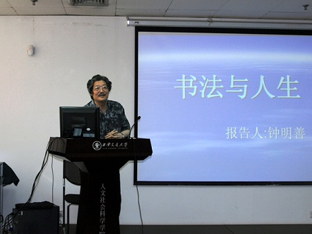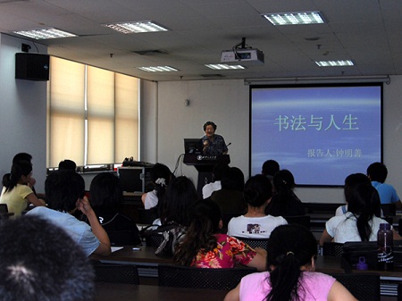 2009年6月4日下午14:30,人文学院中国书法系全体师生齐集主楼E-703,倾心聆听全国“五一劳动奖章”获得者钟明善教授的精彩讲座。