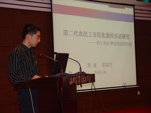 硕956班王夏峥同学、程诚同学就城乡教育和农民工市民化问题做了发言。