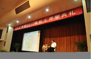 9月3日上午,人文学院在主楼多功能报告厅举行了2011级新生开学典礼。出席这次开学典礼的人员有宫辉书记等学院领导、各系所领导及教授、崇实书院何益敏主任、新生班主任以及辅导员等。将近300名本硕博新生参加了此次开学典礼。