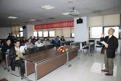 校长助理宫辉书记、人文学院副院长李建群教授等亲切接见了纐缬厚教授,并与其进行了亲切的会谈。会谈结束后,纐缬厚教授在主楼人文学院学术报告厅发表题为“中日关系的课题与展望”的精彩学术报告。