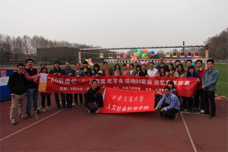 人文学院“80后追忆活动”在校东南门田径场温情登场。学校党委副书记兼人文学院党委书记宫辉博士为活动开场致辞,他回忆了自己快乐、多彩的童年,并感慨80后一代年轻人的开朗、个性与坦率,希望大家通过这种活动,增进同学之间的友谊,保持乐观积极美好向上的人生态度,在学习生活中不断取得进步。人文学院党委副书记宋永平、院办主任张科、学院党委秘书权小娟及院团工委书记于媛芳老师也来到活动现场并与同学们一道玩起了童年的游戏。