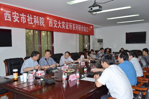 2012年6月17日,第一届“西安市社科院与西交大实证社会科学研究所系列研讨会”在西交大实证所会议厅举行。会议由实证社会科学研究所主办。来自市社科院及交大人文学院两方10多位专家、学者出席本次研讨会。出席会议的有:西安市宣传部副部长夏泽民,西安市社科院院长王作权,西安市社科院副院长高东新,西安市社科院科研处处长朱利民,西交大人文学院院长及实证所所长边燕杰教授,美国德克萨斯农工大学社会学系主任,西交大社会学系主任,实证所研究员陈皆明教授,人文学院副院长及实证所电访中心主任李黎明教授,经济与金融学院院长助理袁晓玲教授,人文学院中文系书记张蓉教授,及社会学系各位师生。会议由陈皆明教授主持。