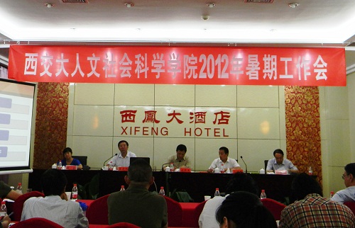 7月21日下午,人文学院2012年暑期工作会议在宝鸡凤翔县西凤大酒店召开。会议由人文学院院长边燕杰教授主持,人文学院党政领导班子、十个系、所、中心负责人、支部书记、青年教师代表等30多人参加了会议。