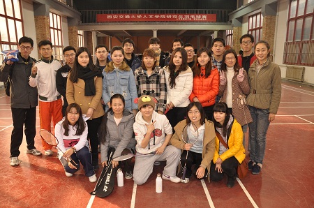 为了丰富人文学子的课余生活,增进研究生间的交流互动,提高大家锻炼健康体魄的意识,2012年12月9日,人文学院团工委、研究生会在梧桐西道羽毛球馆举办了主题为“羽动青春”的研究生羽毛球比赛。比赛以班级为单位参加,每个参赛队伍要参加男单、女单、男双、女双和混双五项比赛的角逐。比赛在两个球场同时进行,每局十五个球,三局两胜,实行淘汰制,最终决出冠亚军。此次共有23名同学参加了比赛。