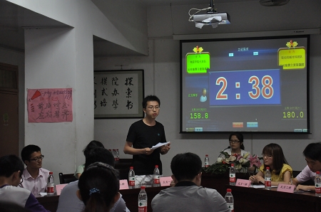 6月3日四个代表队的代表由抽签决定了辩题和对阵双方,在紧张的准备了2天后,于6月6日晚7点在文治书院报告厅举行了初赛。初赛分为上下两个半场,上半场是电信学院代表队对阵能动机械材料联队,辩题为:反对浪费主要依靠道德约束还是制度约束。对阵双方实力较为悬殊,能动机械材料联队从一开始就掌握主动权,并一直紧咬对方漏洞不放,最终获得了胜利,电信学院的何阳同学获得了最佳辩手;下半场是管理学院代表队对阵人文学院代表队,辩题为:当今社会更需要以智取胜的喜羊羊还是越挫越勇的灰太狼。这场辩论较为精彩,双方尽管实力有差别,管理学院代表队一直的追根究底的逼问人文学院代表队,并试图把自己的论点驾于对方的论点之上,但是人文学院代表队一直都坚守着自己的阵地,一再强调自己的论点。比赛以管理学院代表队取得胜利结束,人文学院的苗露露同学获得最佳辩手。当晚的比赛中人文学院的宋永平书记和姚明今副教授给予点评,辩手们也是受益匪浅。6日的比赛结束后,获胜的两支队伍进行了下一轮的抽签。
