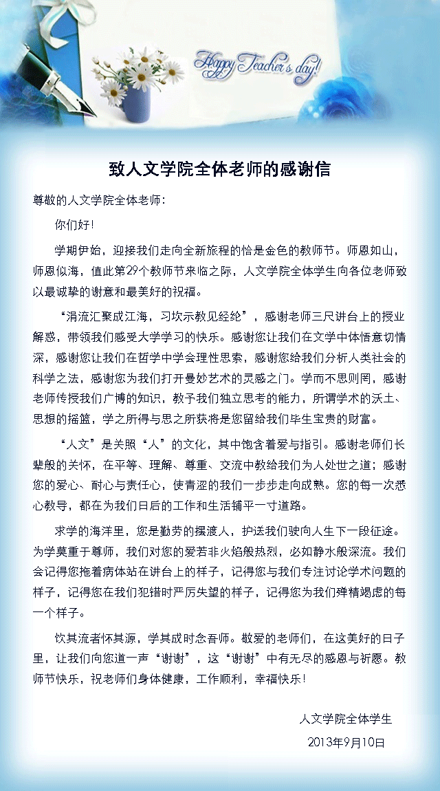 人文学院学生致全体老师的感谢信