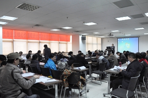 下午举行的是政治理论课教师社会考察交流会。《中共中央关于加强和改进思想政治工作的若干意见》指出高等学校学生思想政治工作者应该坚持学习书本知识与投身社会实践的统一。为了贯彻落实中央精神,提高思想政治理论课教师的社会实践能力,马克思主义学院自2009年起连续五年组织思想政治理论课教师参加社会实践。此次社会考察交流会是对五年的社会考察工作的总结和交流。