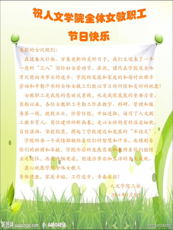 祝人文学院全体女教职工节日快乐
