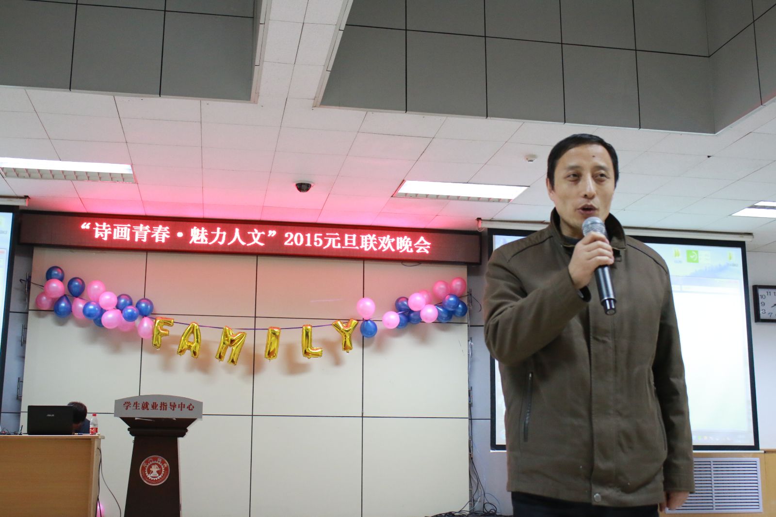 晚会期间,人文学院马晓彬书记向老师、同学们致辞,他首先肯定了同学们多才多艺的表演,以及在影响校园文化生活中做出的贡献。他希望大家在新的一年里,努力学习的同时,能发挥特长,参与到丰富多彩的校园文化活动中,并带动自己的导师参与进来。最后,他还向在场师生送上了真挚的新年祝福。