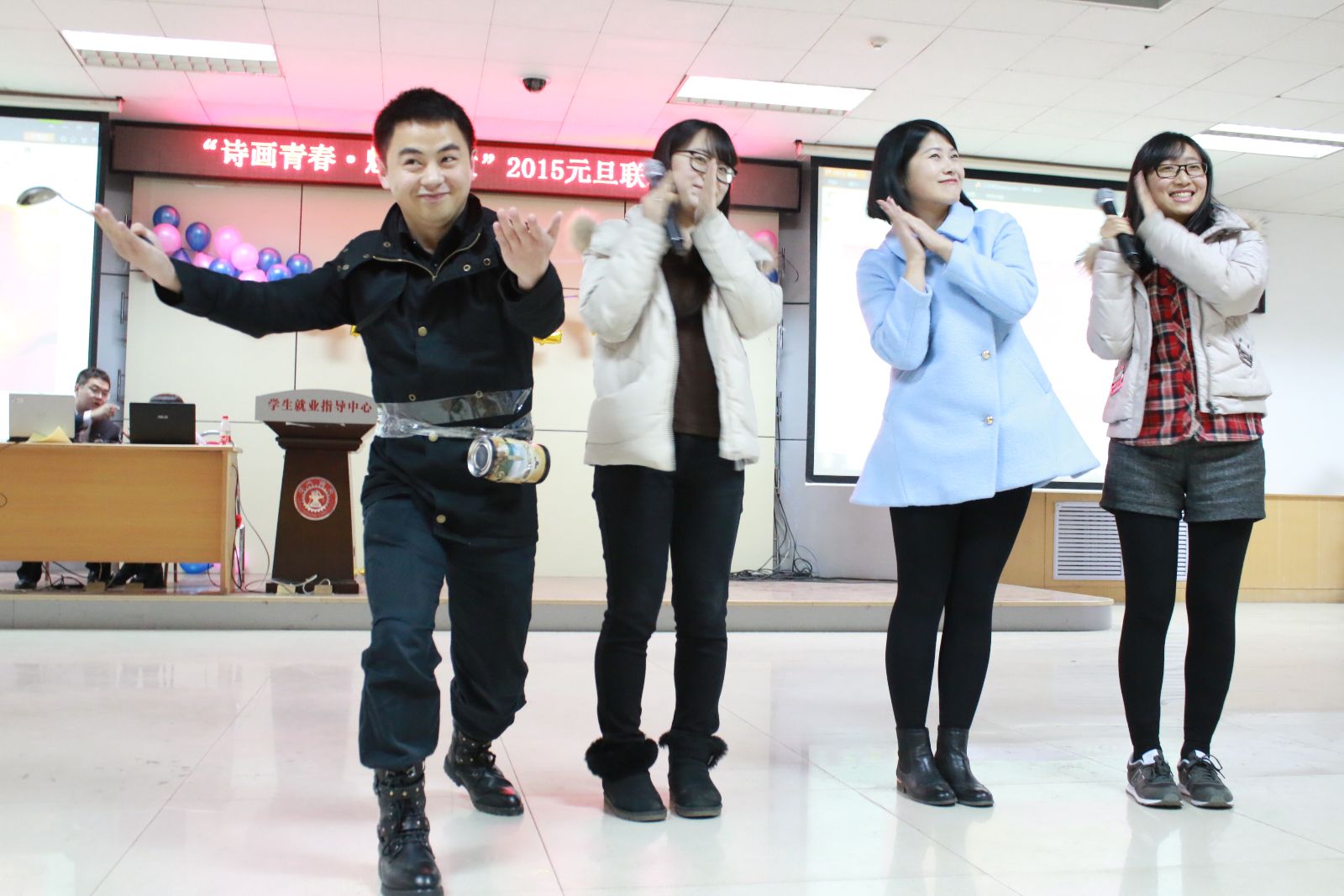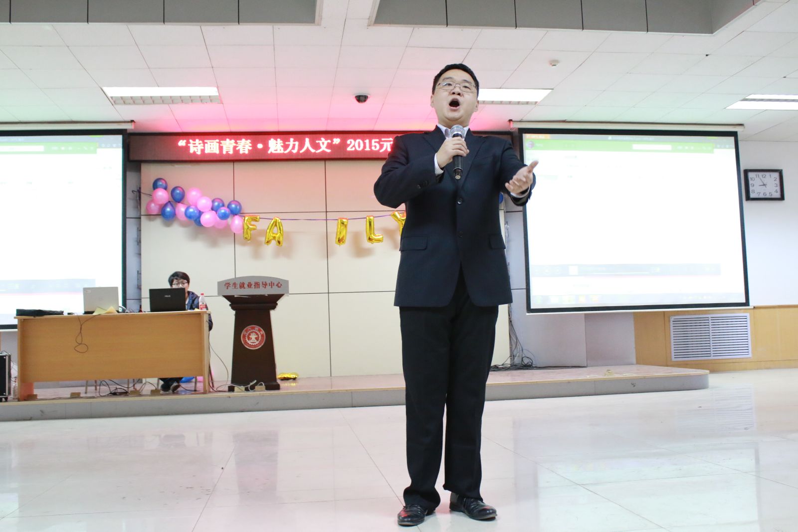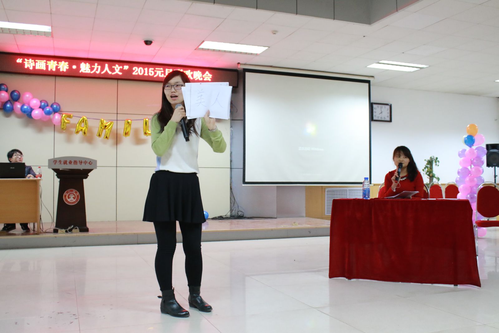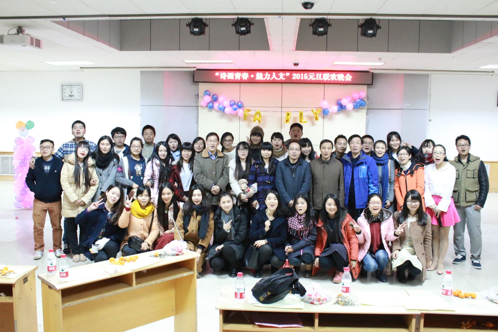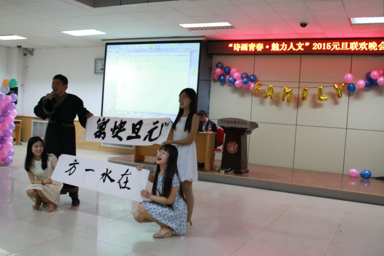 伴着激扬的音乐,2014年12月23日晚7:00,人文学院“诗画青春,魅力人文”元旦晚会在就业中心一楼大厅拉开序幕。学生处副处长叶明老师,团委书记周远老师,人文学院分党委书记马晓彬,副书记宋永平,副院长李黎明、燕连福,工会主席范高社老师和同学们欢聚一堂,共同度过了一个难忘的夜晚。在我们的邀请下,兄弟学院的同学们也参与了进来,共同辞旧迎新。