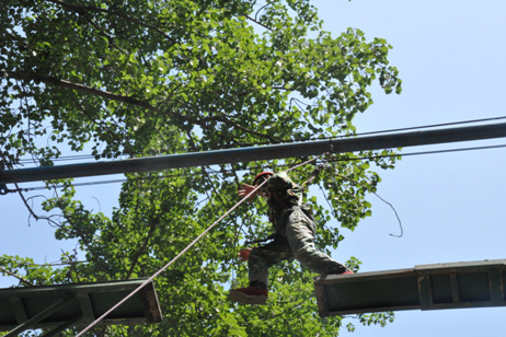 短暂休息调整后,两队开始了第一个挑战项目——高空断桥。男生们率先登上铁板,一个个身手矫健的完成了任务,女生们也不甘示弱,紧随其后接受了挑战。有些女生在爬上铁板后恐高不敢跳断桥,然而最终在队友的鼓励下,克服自己的恐惧心理,勇敢地跨出了自己的脚步,突破了自己的心理障碍。