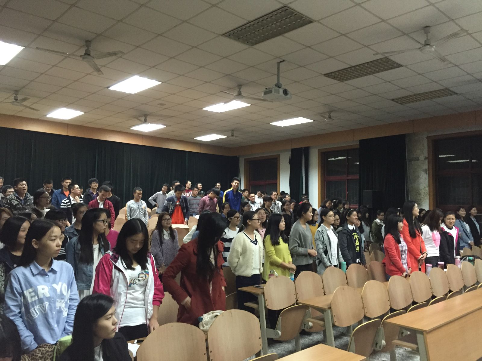 2015年10月13日晚,由航天、人文、马克思主义学院组成的三院联队在东二音乐教室进行了第三次“中华之声”大合唱排练。在短短的两个小时内,研一新生们精神高度集中,完成了当天的排练任务。