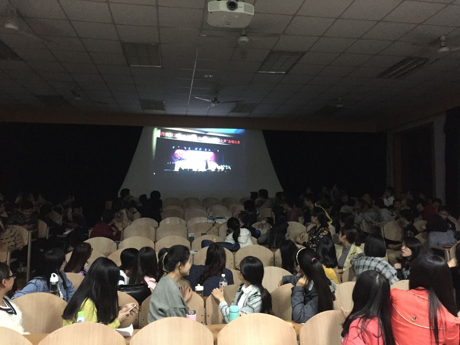 同学们带着饱满的热情开始了排练。首先是音阶的练习,教练老师向大家讲解了发声的原理,引导他们运用腹式呼吸法进行练习。钢琴伴奏从C大调音阶开始弹奏和弦,同学们和着音阶发声,随着音阶的提高,大家的音域也渐渐提升上来。在音阶开嗓之后,就开始了正式校歌的训练。“美哉吾校,真理之花”,优美的旋律萦绕在阶梯教室。尽管同学中有相当一部分本科都不是交大学生,然而在教练的引导下他们都渐渐熟悉了校歌的曲调。排练最后,教练还给同学们示范了自选曲目,在轻松的氛围下,民歌被同学们唱出了活力与新意。