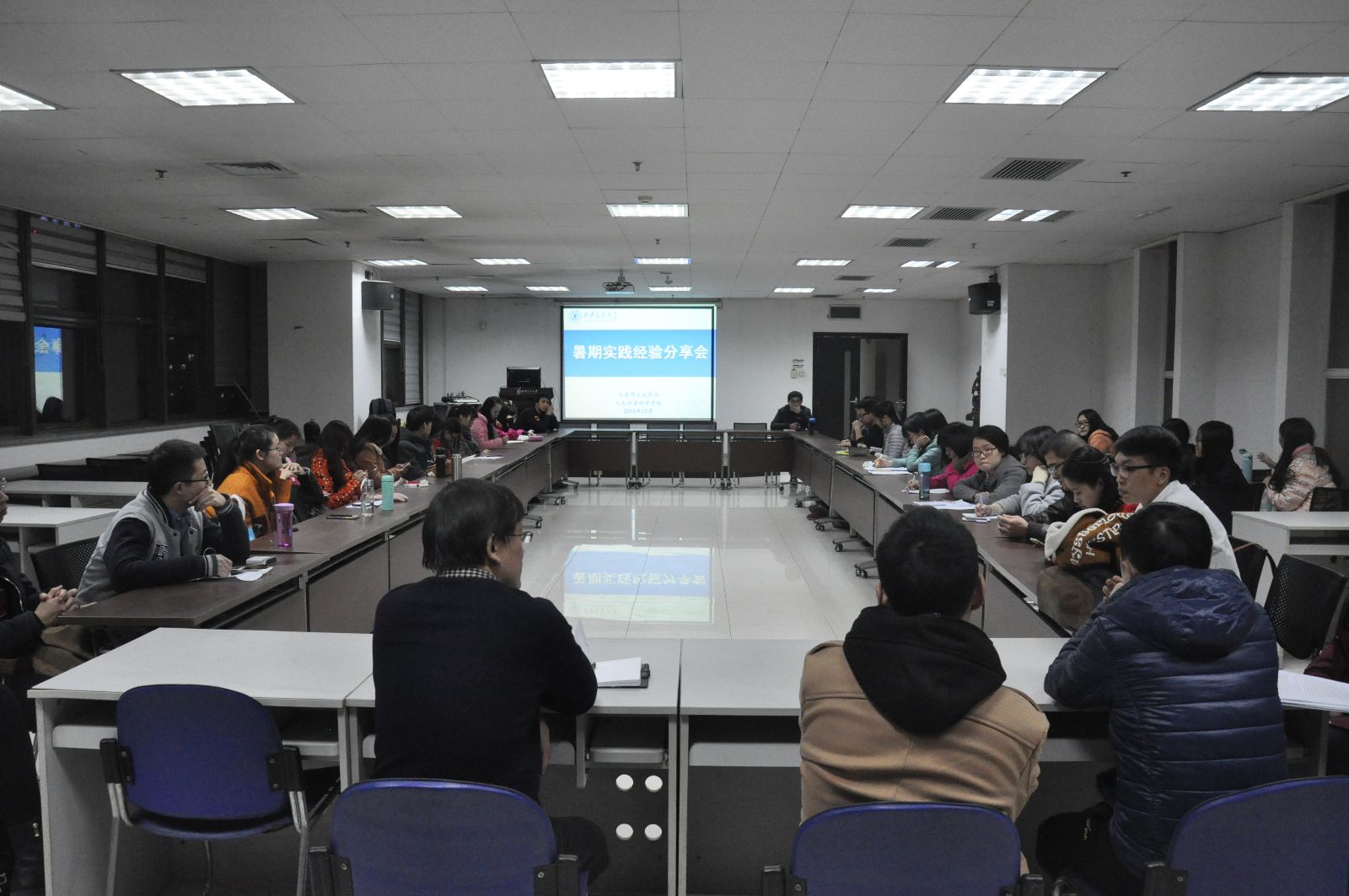 12月3日晚7:00,由人文学院、马克思主义学院共同举办的研究生“暑期实践经验分享会”在主楼703召开,会议由马克思主义学院辅导员耿嘉敏老师主持,校团委副书记高彦老师、马克思主义学院党委副书记宋永平老师、两个学院参与暑期政府实习的同学以及研一新生共同参加了此次分享会。