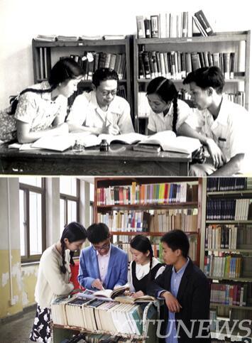 黑白的照片记录的却是一段彩色的生活,因为书籍的存在,生活变得更加通亮,同学们尽情徜徉书海,品味书香。
