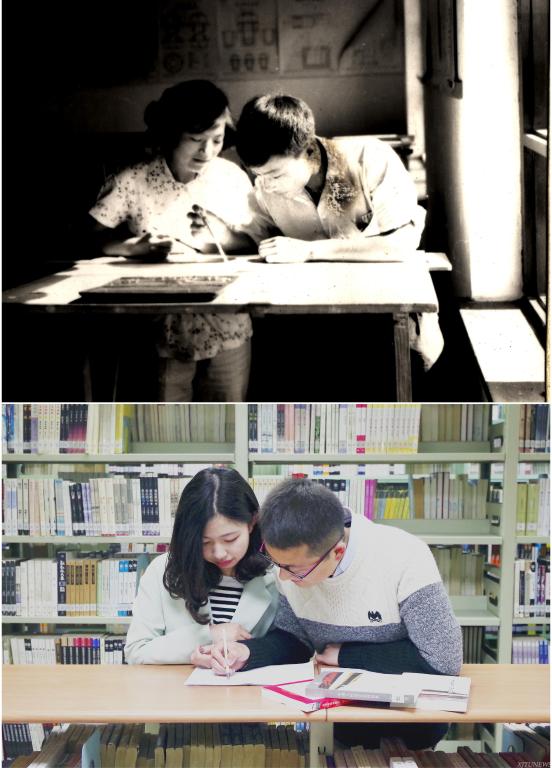 照片早已斑驳,但交大学子专心科研、刻苦攻坚的精神却永不褪色。