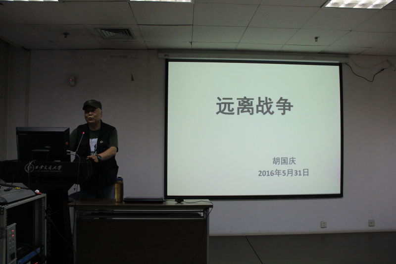 本期真人图书馆收藏的“真人书”是胡国庆先生。作为中国新闻奖获得者、资深新闻摄影记者的胡国庆先生,与现场四十多名同学分享了自己作为战地记者的见闻及30余年新闻采访的生涯。人文学院党委副书记李重出席此次分享会,活动由人文研会副主席王新童主持。