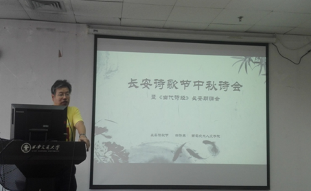 主楼E座703会议室圆满举行。此次中秋诗会邀请到了伊沙、左右、艾蒿、王有尾、西毒何殇等数十位国内著名诗人莅临分享诗作。另外,除了交大师生以外,还有西北大学、陕西师范大学、西安外国语大学等其他高校的诗歌爱好者踊跃报名,并现场朗诵作品。人文学院党委副书记李重、中文系李慧教授、黎荔副教授出席本次活动。长安诗歌节交大中秋诗会由当代著名诗人伊沙先生主持。