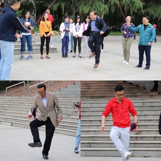 最后,教职工党员和学生党员共同开展了多个互动活动。通过跳大绳、齐心协力等团体游戏和呼啦圈、踢毽子等个人游戏,拉进了师生之间的距离,展现了积极向上、团结奋发的精神面貌。大家纷纷表示,此种寓教于乐、形式灵活的组织生活会应该多举办,让大家在组织和互动中实现情感的交流,在情感的交流中实现思想的沟通,在思想的沟通中实现认识的升华。
