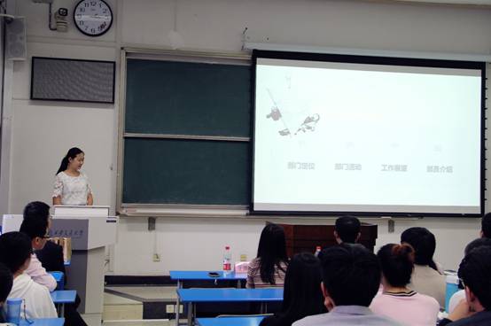 紧接着,李鹏飞副部长、滑璀菁部长、田琳副部长、崔可嘉部长、唐瑶部长分别代表秘书处、宣传部、学术部、文体部、职业发展规划部做了部门展示。通过各位部长详细而精彩的展示,与会老师与研究生会成员认识了本学年新加入的38位干事,了解了新一届研究生会的组织架构,也明确了研究生会未来一年的工作规划。自信的风采中,各个部门表达了对研究生会坚定的承诺。