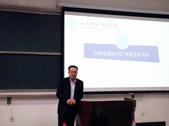 人文学院党委副书记李重老师首先致辞讲话。他提到,历届研究生会的干部都秉行以学生利益为中心,精诚合作,求真务实,不仅树立了人文学院研究生会全心全意为研究生服务的优质形象,也将交大学子的人文情怀推广到学校内外。新的学年,学校迎来了四海八方的莘莘学子,研究生会也需要吐故纳新,接收新鲜成员。李老师对新一届研究生会的成员表示了热切的欢迎。继往开来,力创新高是李老师对本届研究生会的殷切希冀。