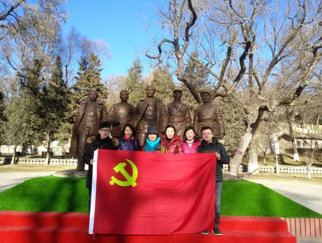 党员们依次参观了毛泽东、周恩来、、、、、的旧居、中央书记处小、“为人民服务”讲话台等景点,忆往昔峥嵘岁月,缅怀革命先烈,并在“五大书记”铜像下举起党旗合影留念。