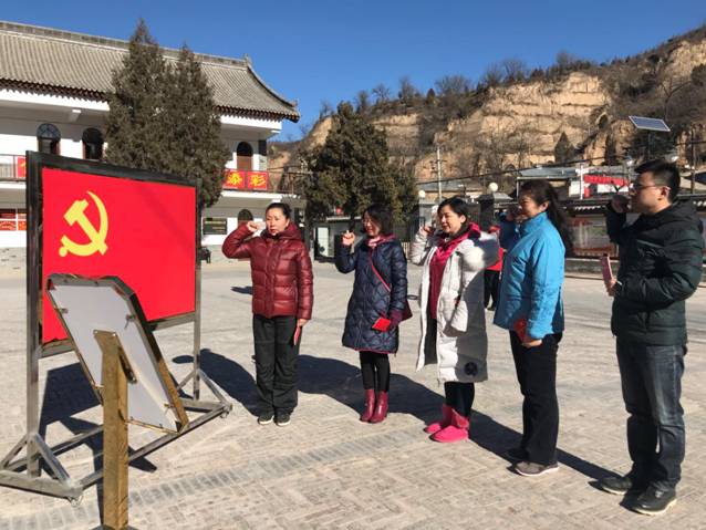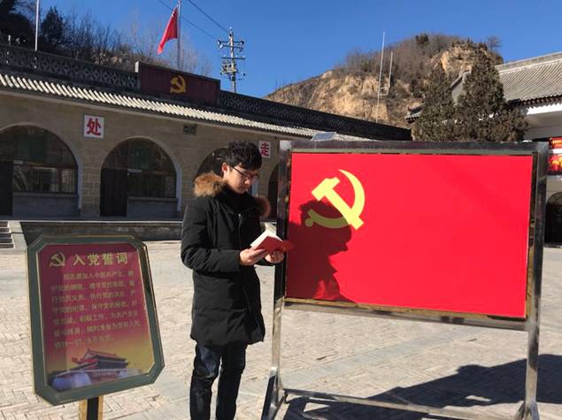 梁家河村史馆外,在支部书记曹耿献副教授的带领下,怀着对党的深厚情感,面对鲜红的党旗,全体党员左手拿着党章,高高地举起右手,重温了入党誓词:“我志愿加入中国共产党,拥护党的纲领,遵守党的章程,履行党员义务,执行党的决定,严守党的纪律,保守党的秘密,对党忠诚,积极工作,为奋斗终身,随时准备为党和人民牺牲一切,永不叛党。”