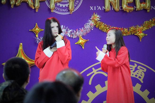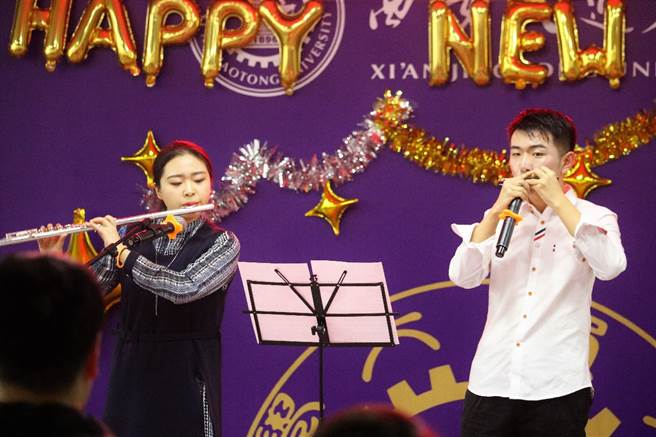 晚会在留学生们的舞蹈表演《越南,你好》中华丽上演。在第一个篇章“新时代、新征程”中,动感活力的《超级玛丽炫舞拉丁》立刻预热了现场的气氛;精彩的留学生相声表演《年轻与年长之争》展现了留学生们在中国、在交大的美好生活;魏思敏和张朔两位同学带来的《不忘初心》更是唱出了人文学院对祖国的美好祝愿:“向往你的向往,幸福你的幸福,不忘初心,继续前进”。