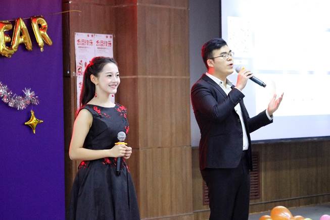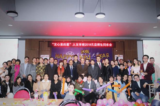 2017年12月28日晚7点在就业中心一楼大厅,人文学院“文心里的爱”元旦师生同乐会顺利拉开帷幕。人文学院西迁教授卢烈英,就业中心主任郑旭红、学工部部长周远、校团委副书记张彦鹏、崇实书院院务副主任张丹,人文学院党政领导班子及部分系主任,和学院师生一起欢度新年。