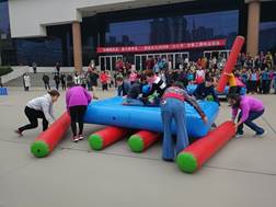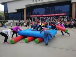 女教工们积极报名参加了此次庆祝活动,共有十多位女教工报名参加了此次庆祝活动。比赛开始前校党委常委、统战部部长张定红参加活动并致辞,校工会副主席张庆生主持开幕。为体现“团结、协作、奋斗、争先”的主题,此次运动会项目作了精心设计,准备了同舟共进、追赶超越、奋勇向前和团结一心四个项目。这些项目都需要参赛的团队人员之间要分工协作、密切配合才能顺利完成,每个项目既有技巧性同时又考验每个团队人员之间的相互协作性,虽然天气不太好,中间还有下小雨,但丝毫不影响大家参加比赛的兴趣和热情,整个比赛期间,人文学院参赛的女老师们齐心协力、相互配合,共同顺利完成了所有的比赛项目,没有参赛的老师们在赛道旁加油、助威、呐喊,整个比赛的现场热闹非凡。在每一个比赛项目开始前,大家专注的相互讨论分析每一个项目完成的重点和难点,提前做好分工,虽然有个别女老师比赛时摔倒受伤,但依然不影响后续比赛的热情。比赛过程中,大家欢天喜地,加油声、呐喊声、欢笑声不绝于耳。中文系吴小侠老师说:“太有意思了!这是我过的最有意义的一个妇女节,和大家在一起好开心!”,艺术系的鲁鹏老师说:“太热闹啦,看着都开心!”,新来的王瑜萍老师说:“这个活动太好玩啦,我是第一次参加,以后我每年都要参加,太开心啦!通过比赛,加强了老师们的交流沟通,增进了彼此间的友谊,激发了大家以更加饱满的热情投入到学校各项教学科研管理工作中去。