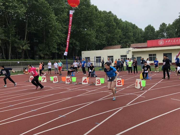 同时,学院教工老师们积极参与了男子铅球、男子4*100米接力、抱球跑、拍球跑、踢毽子、跳小绳等项目,充分发扬了“四面旗帜”的乐观主义精神。